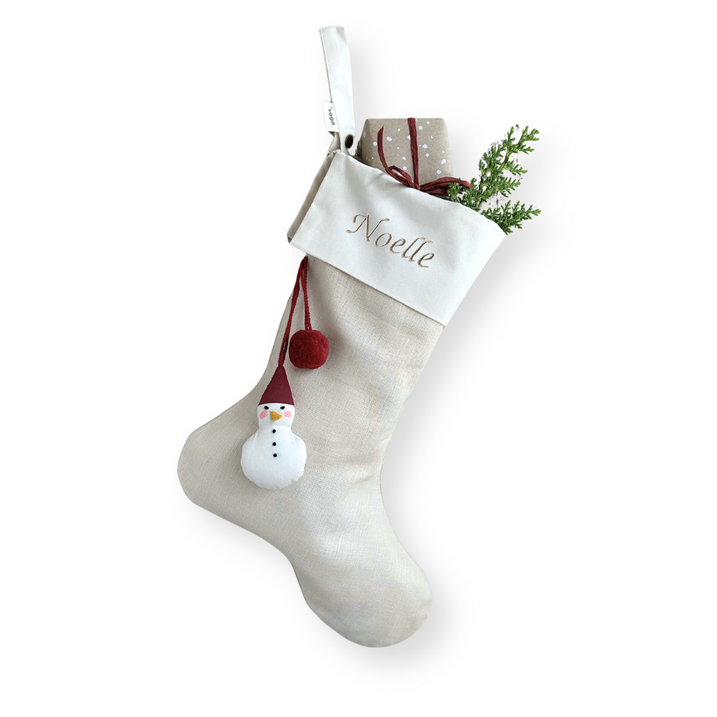 Christmas Stocking - With Personalized Embroidered Name - Snowman - Marzipan - Limited Quantity
