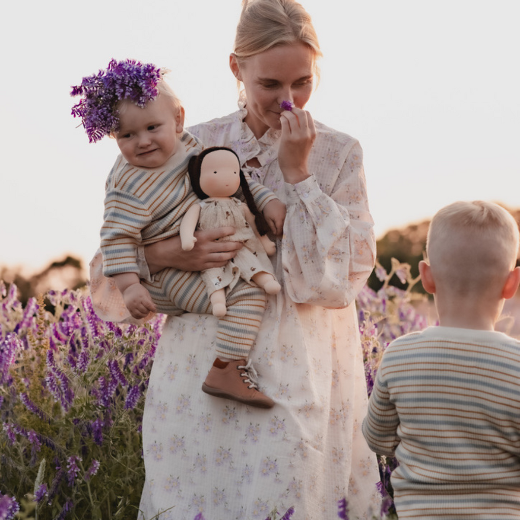 Denne Waldorf-inspirerede dukke, Ayu, er lavet til at blive elsket gennem hele livet, både af børn og voksne. Dukken er lavet af naturlige materialer, med stor opmærksomhed på detaljer og holdbarhed.