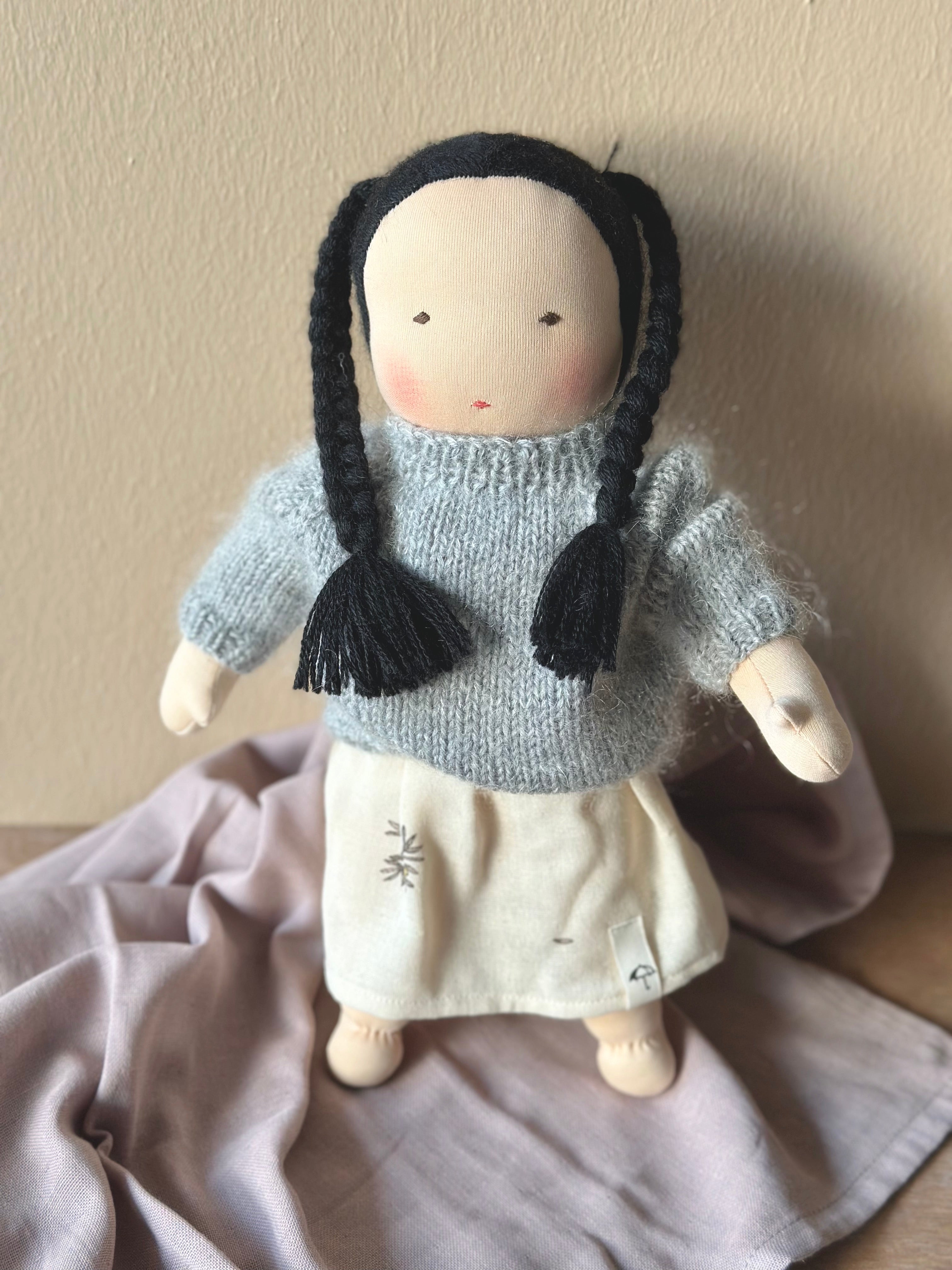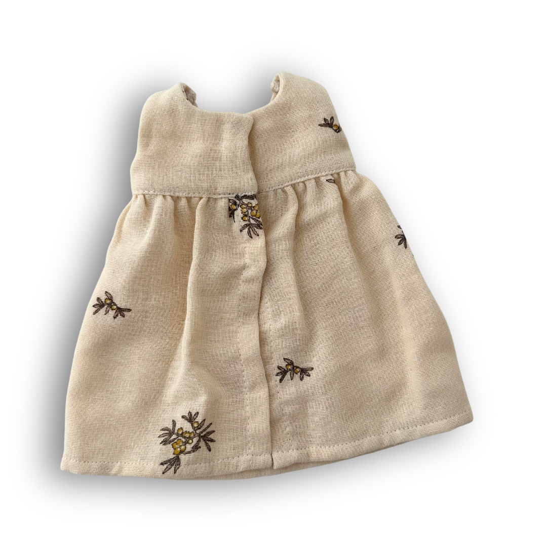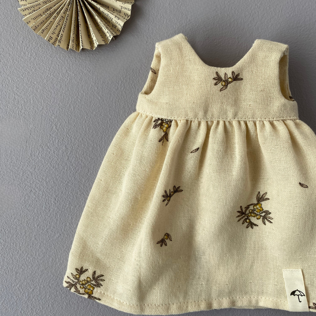 The dress is hand-sewn in Denmark using leftover yarn and recycled fabric.
