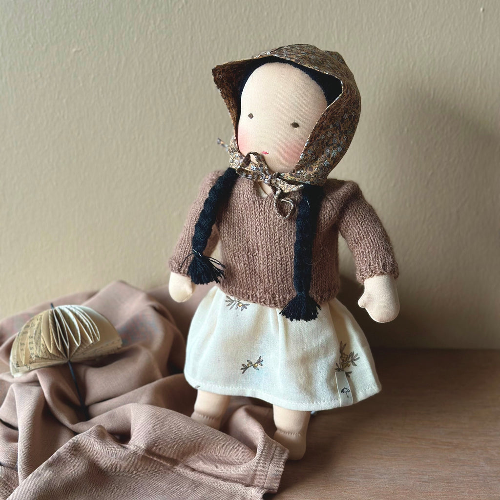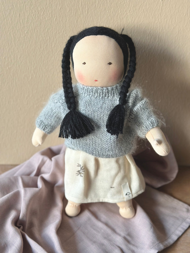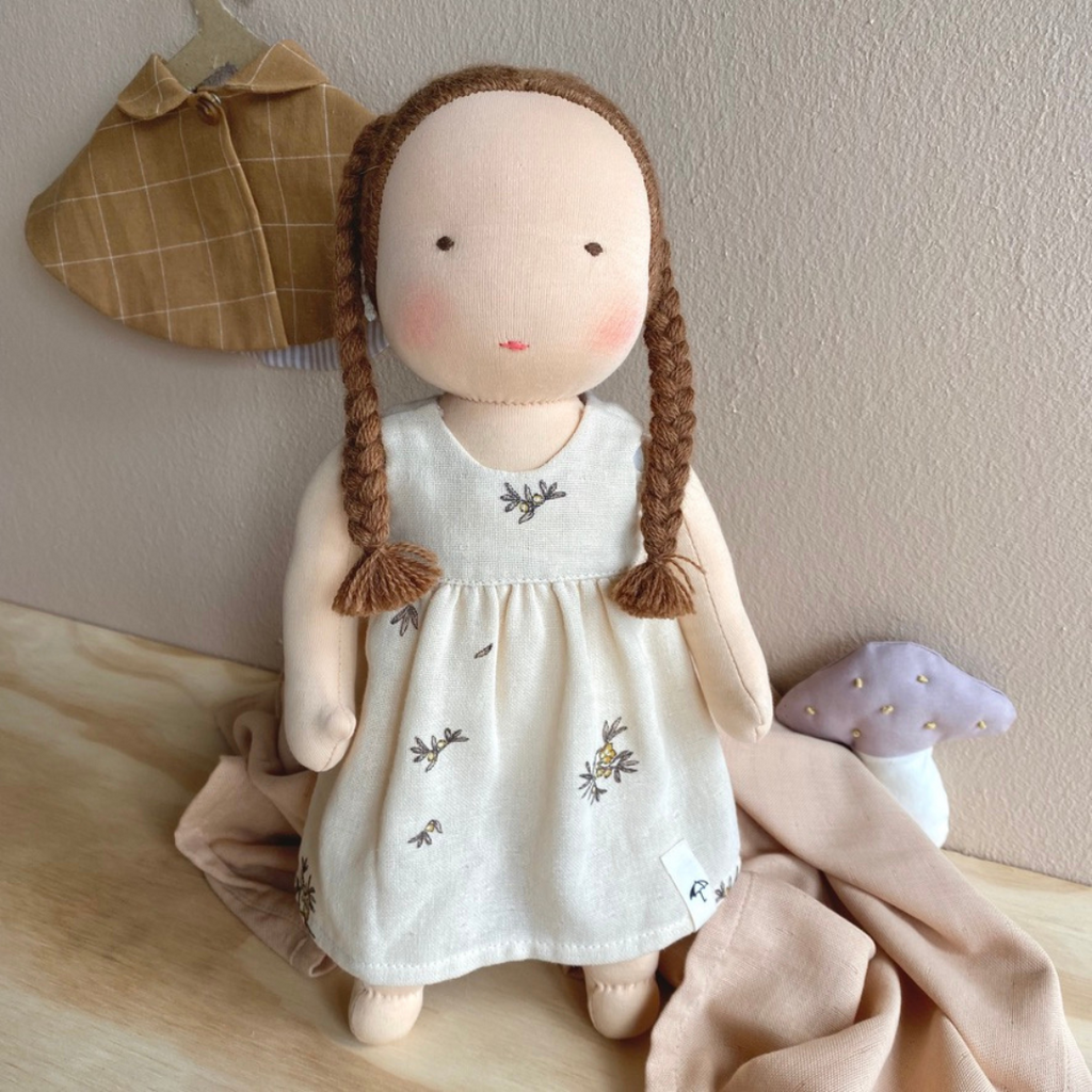 The dress is hand-sewn in Denmark using leftover yarn and recycled fabric.