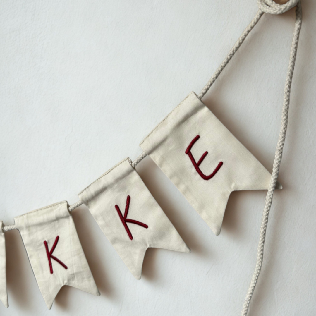 You can also make the garland even more personal: Add an extra flag with custom embroidery – a name, an age, or a heartfelt message – and let the garland grow with your family. A meaningful gift for christenings, baby showers, or young families beginning their own traditions.