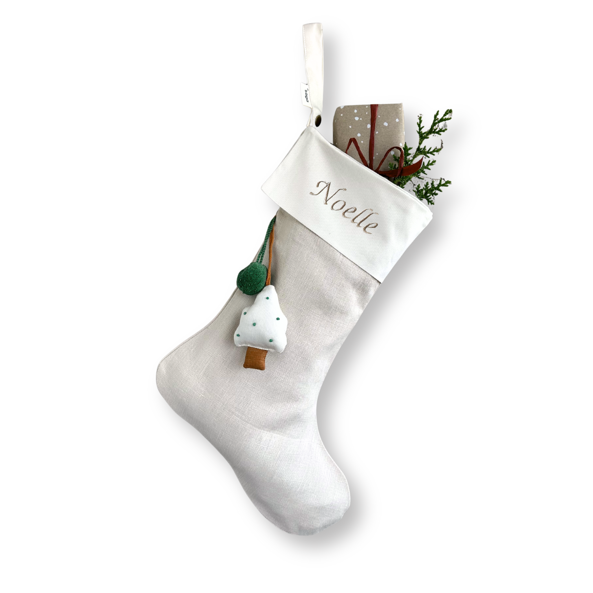 Christmas Stocking - With Personalized Embroidered Name - Christmas Tree - Marzipan - Limited Quantity