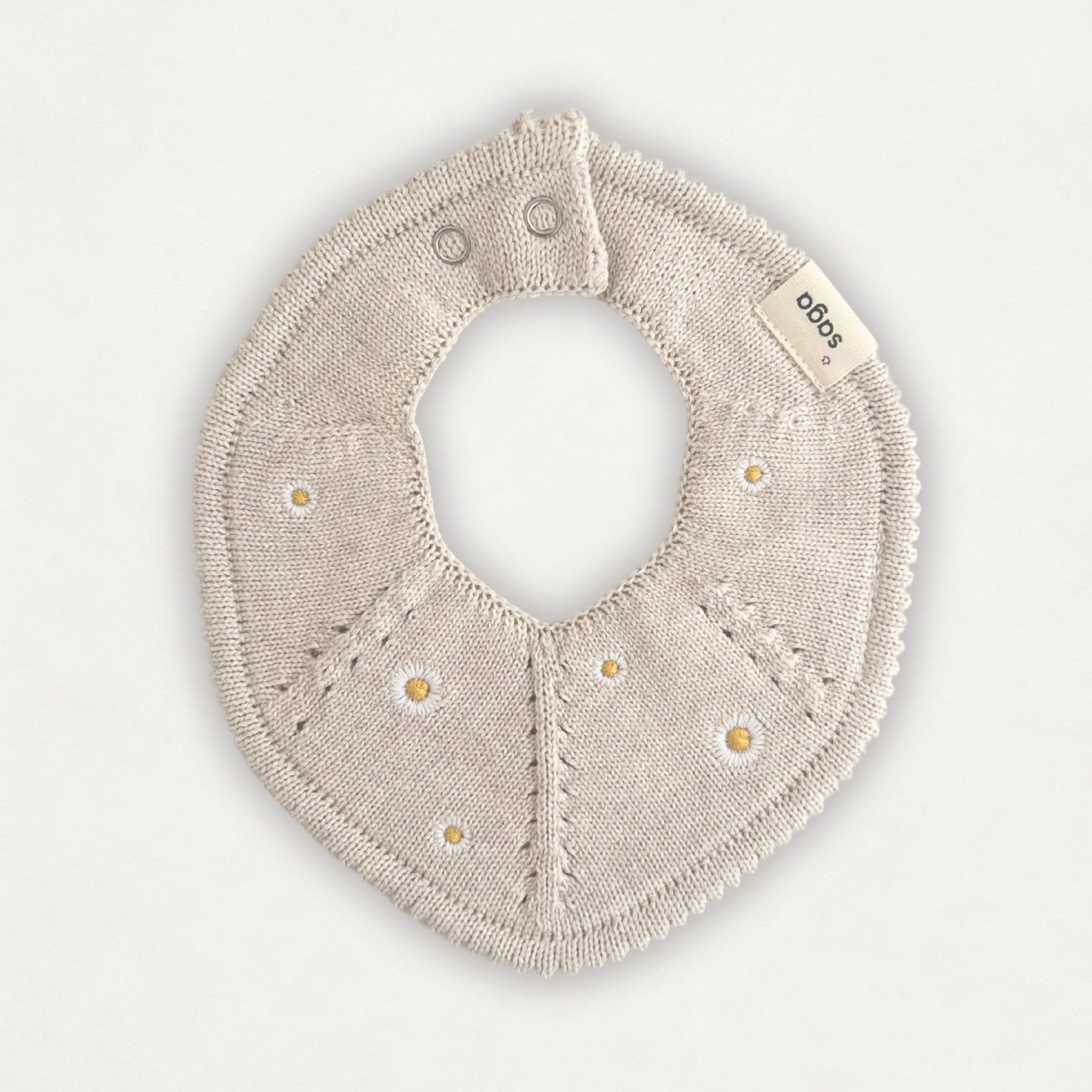 Featuring a high-absorbency fabric, it effectively manages drool while the adjustable neck closure provides a perfectly tailored fit for your little one. Delicate knitted details and the charming Daisy Bloom colourway add a stylish touch that complements any outfit.